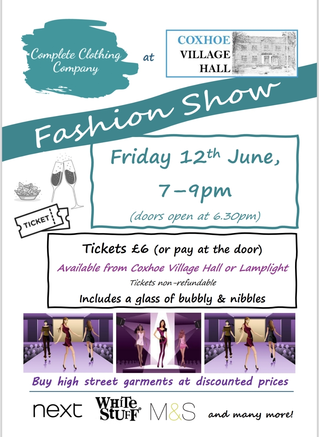 - Fashion Show – Friday 12th June, 6.30pm for 7pm start